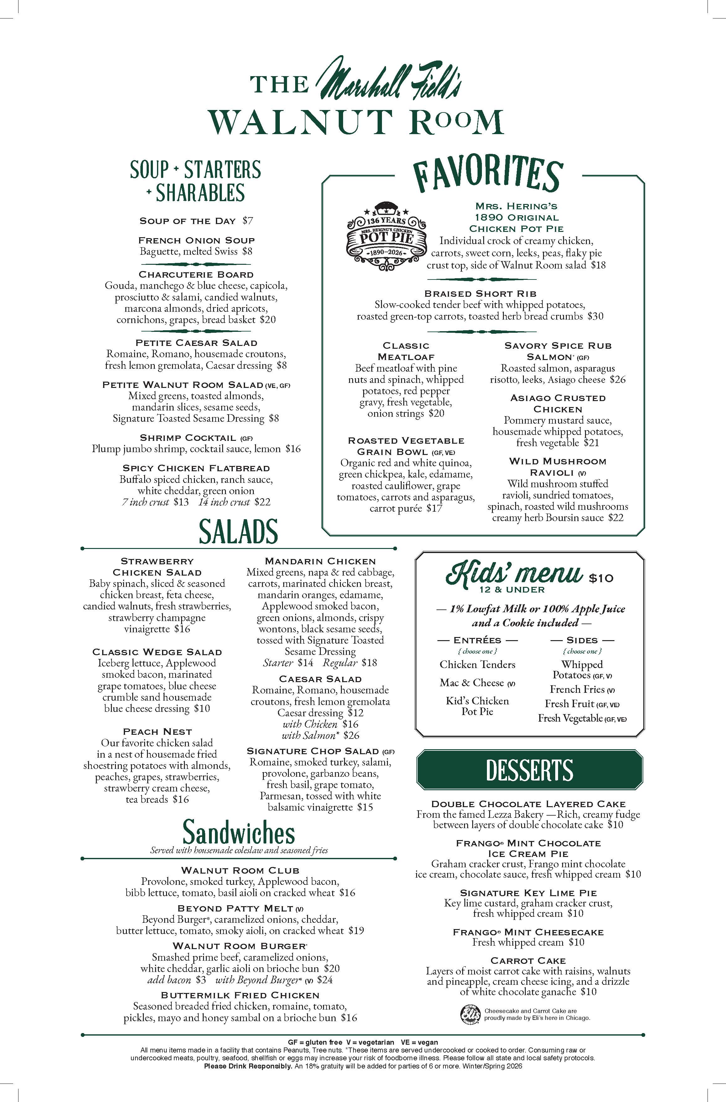 Walnut Room Menu